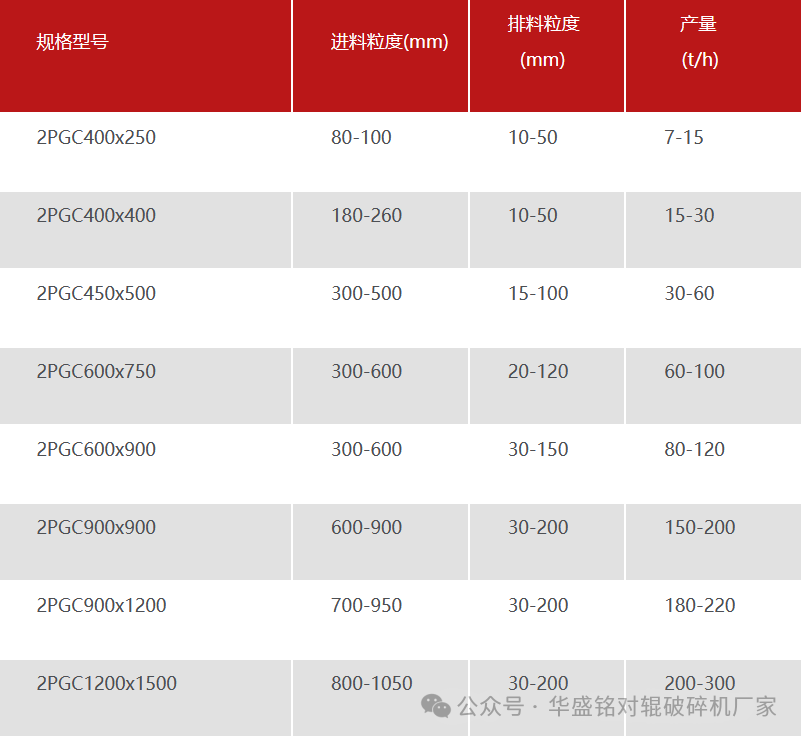 雙齒輥破碎機型號參數: